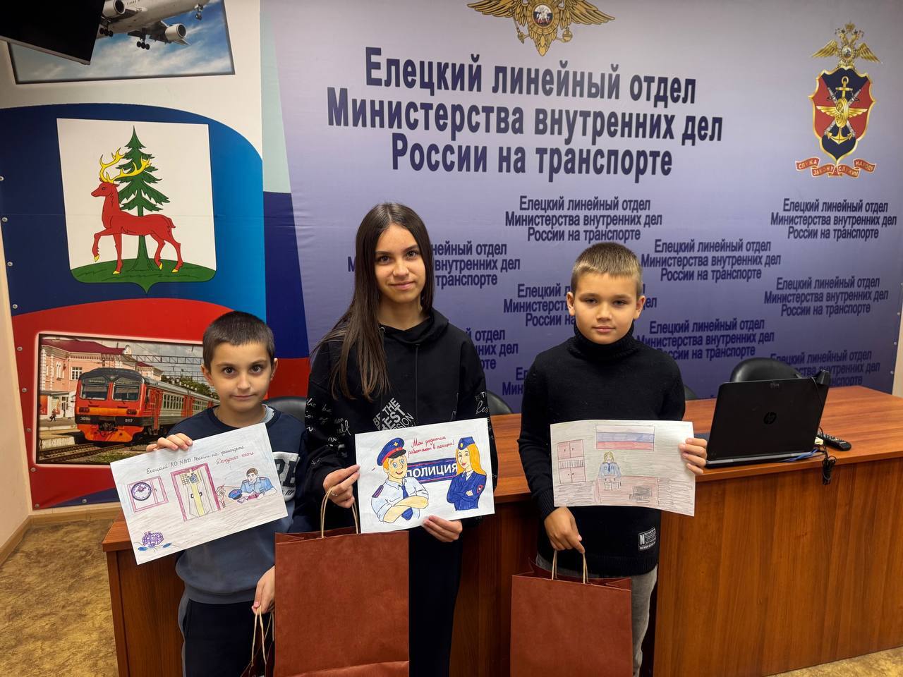 Руководство Елецкого ЛО МВД России на транспорте выразило признательность юным художникам за участие в конкурсе, а также пожелало ребятам творческих успехов, новых интересных проектов и, конечно же, побед!
