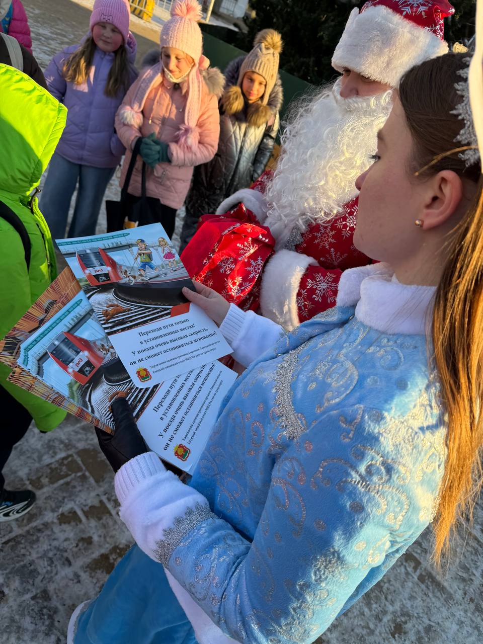 Новогоднее волшебство с напутствием: в Ельце «Полицейский Дед Мороз» напомнил детям о безопасности на железной дороге
