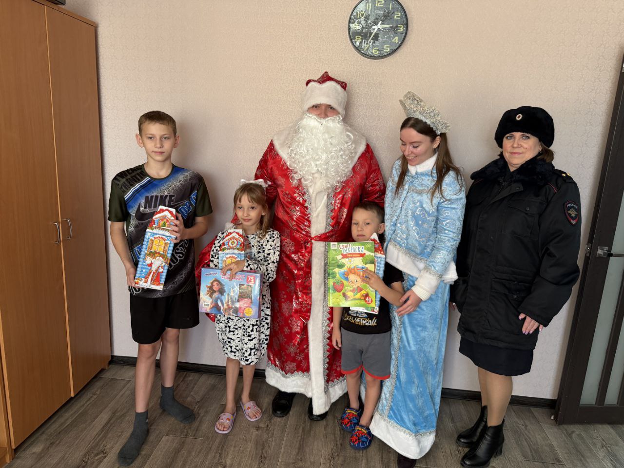 Сотрудники Елецкого линейного отдела МВД России на транспорте в рамках традиционной акции «Полицейский Дед Мороз» поздравили с Новым 2026 годом многодетную семью, проживающую вблизи объектов железнодорожного транспорта.