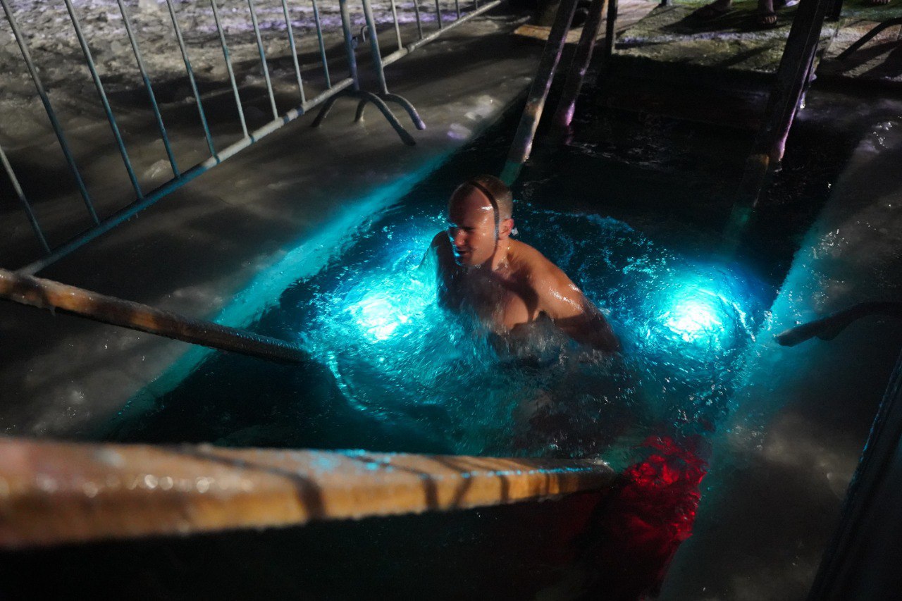 Сотрудники Госавтоинспекции в Липецке и районах области после окончания несения службы приняли участие в крещенских купаниях.