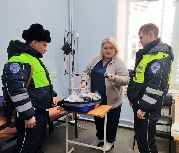 В филиале данковской муниципальной больницы, расположенной в поселке Лев-Толстой медики провели для полицейских обучающее занятие с использованием специальных укладок, которыми укомплектованы патрульные автомобили.