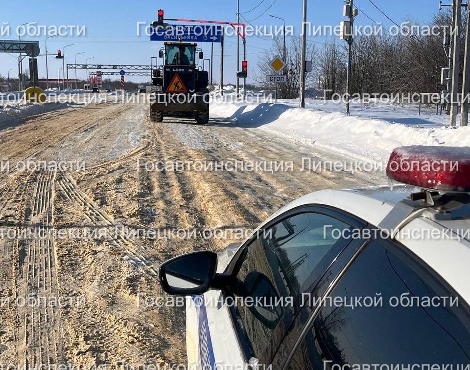 Отделением Госавтоинспекции ОМВД России Липецкий осуществляется регулирование движения при уборке снега и наледи дорожными службами на федеральных трассах: подъездная дорога от автомобильной дороги М-4 Дон к г. Липецку и Орел-Ливны-Елец-Липецк-Тамбов. Задействована тяжелая техника и дорожные машины.