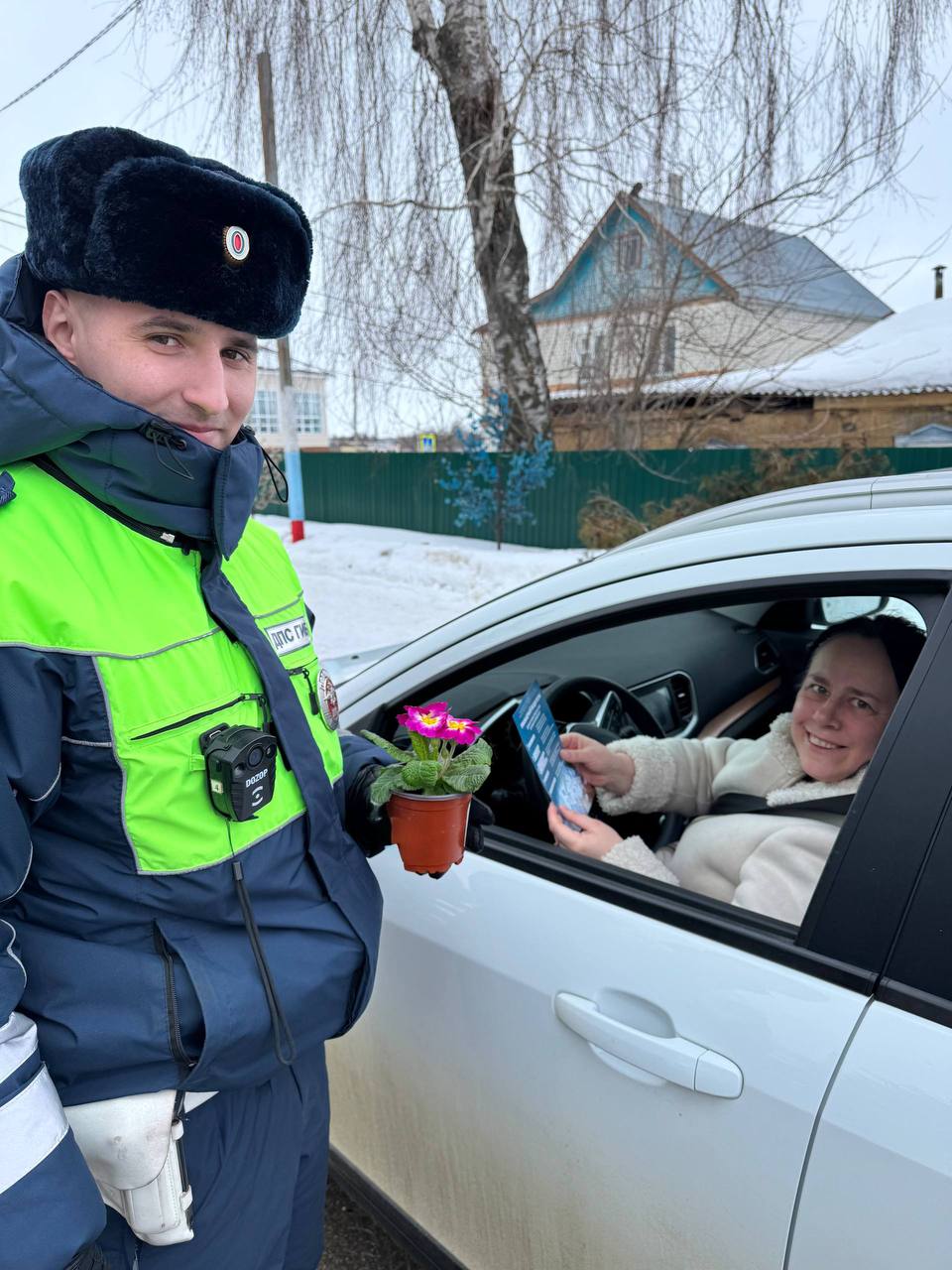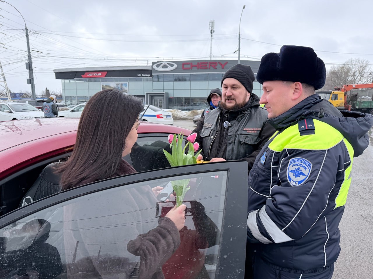 В преддверии Международного женского дня сотрудники липецкой Госавтоинспекции традиционно поздравляют автоледи на дорогах региона