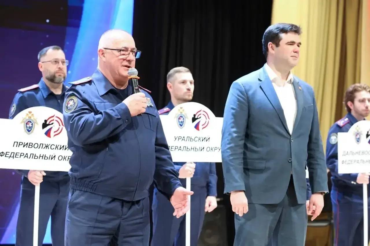 С приветственным словом к участникам соревнований обратился руководитель управления общественно-политической работы СК России Герой России Сергей Васильевич Петров: