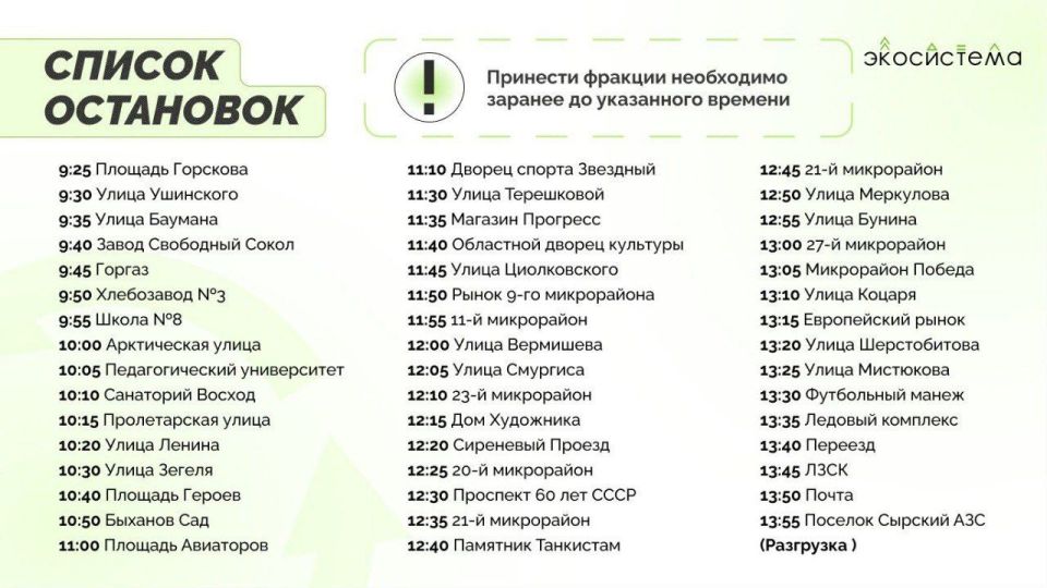 Экорейс пройдёт 25 октября по маршруту от площади Горскова до посёлка Сырский. В этот раз автобус сделает 47 остановок, а по пути для жителей проведут шесть мастер-классов на экологические темы.Волонтёры движения «Экосистема» примут от липчан пластик...