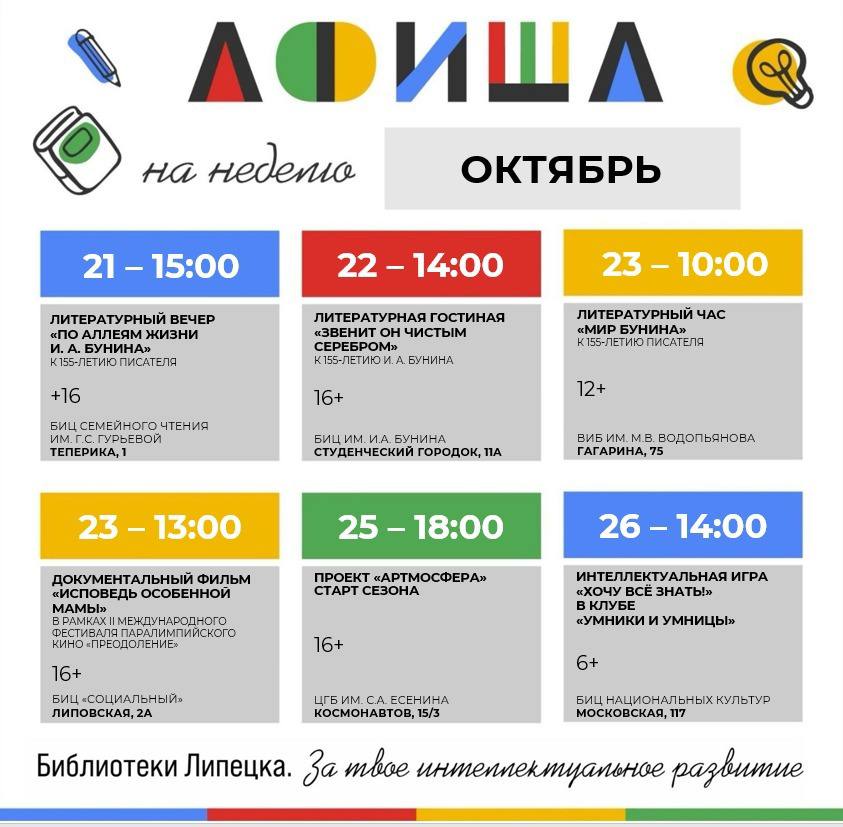 Афиша мероприятий в библиотеках города с 21 по 26 октября.