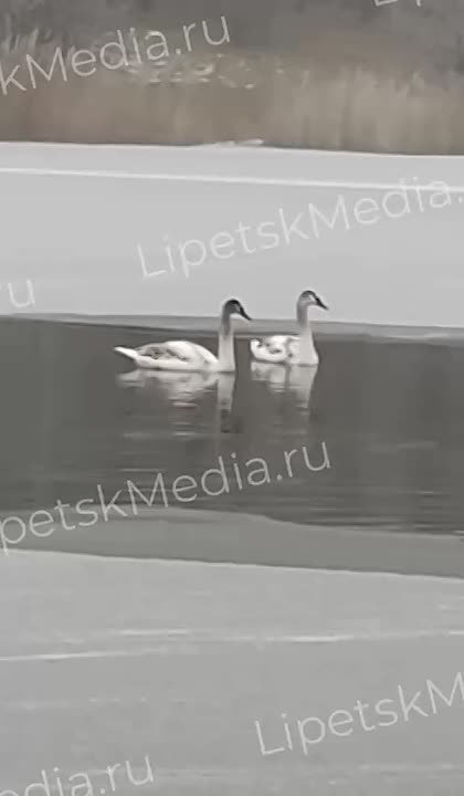 Белые красавцы выбирают для зимовки пруд в Замартынье Добровского округа.