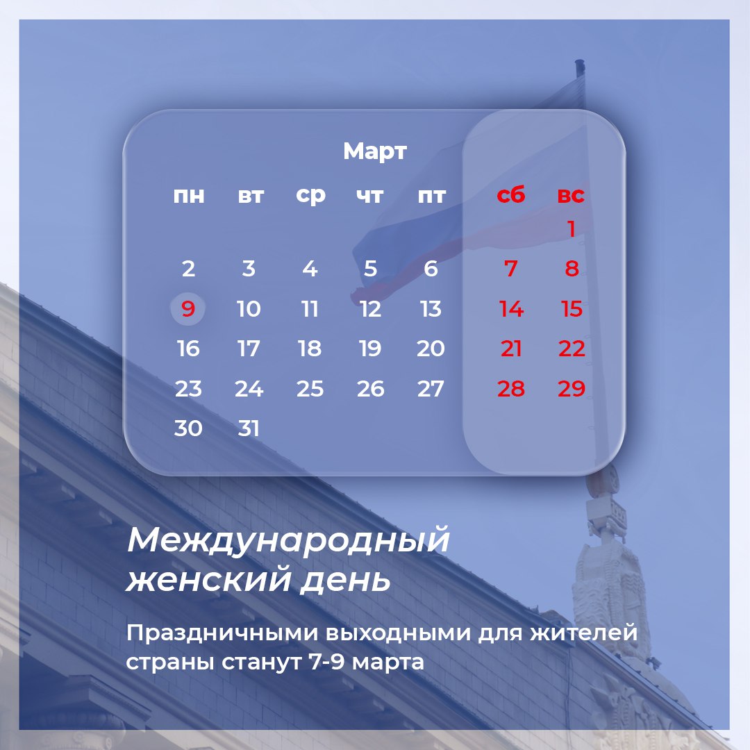 с 7 по 9 марта,