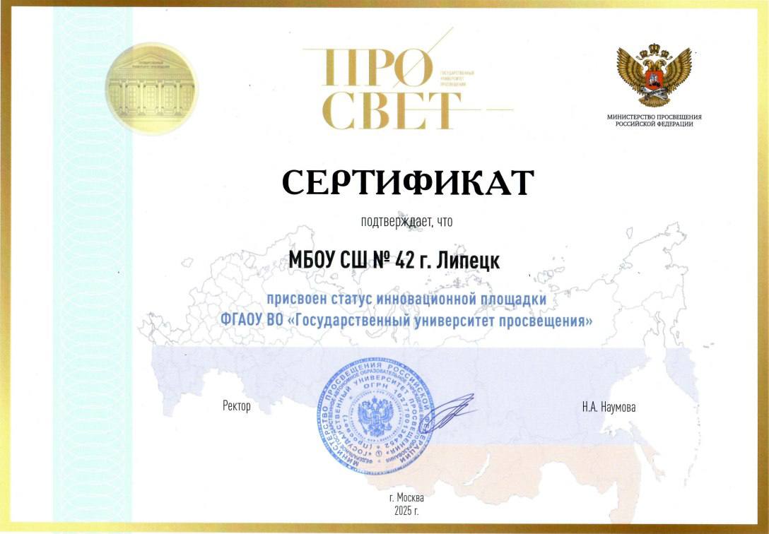 Липецкой школе №42 присвоен статус федеральной инновационной площадки Государственного университета просвещения