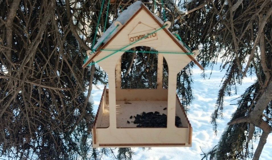 Ребята из школ 29, 5, 25, 42, 49 смастерили кормушки. Теперь в меню у пернатых регулярно появляются семечки, пшено и сало.