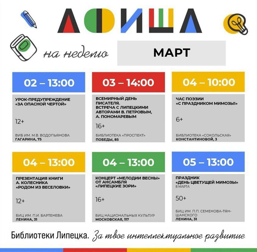 Афиша мероприятий в библиотеках Липецка с 2 по 5 марта