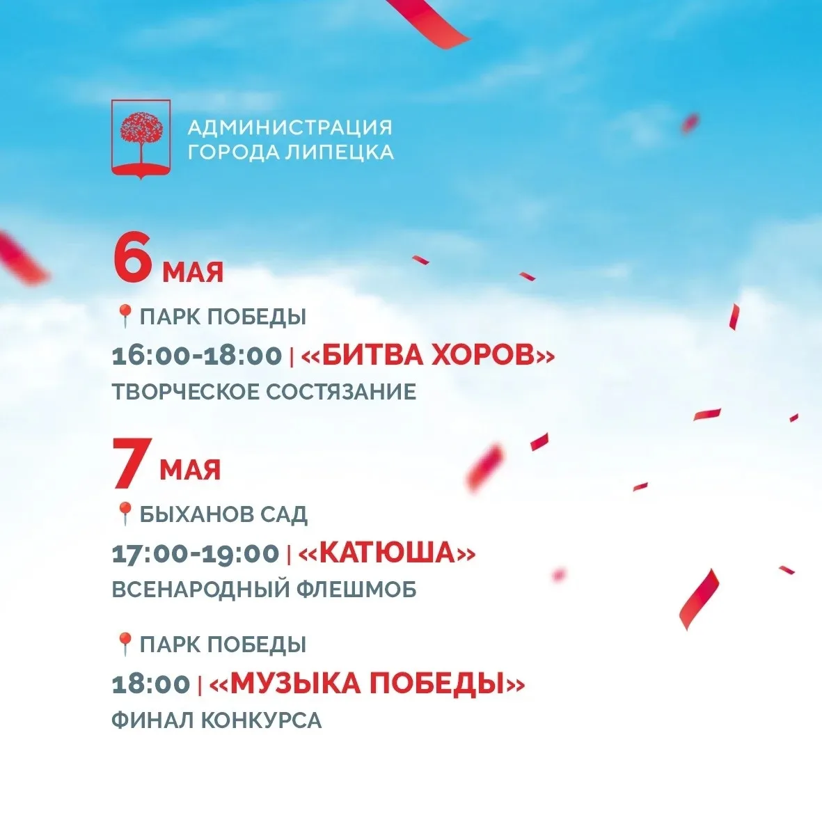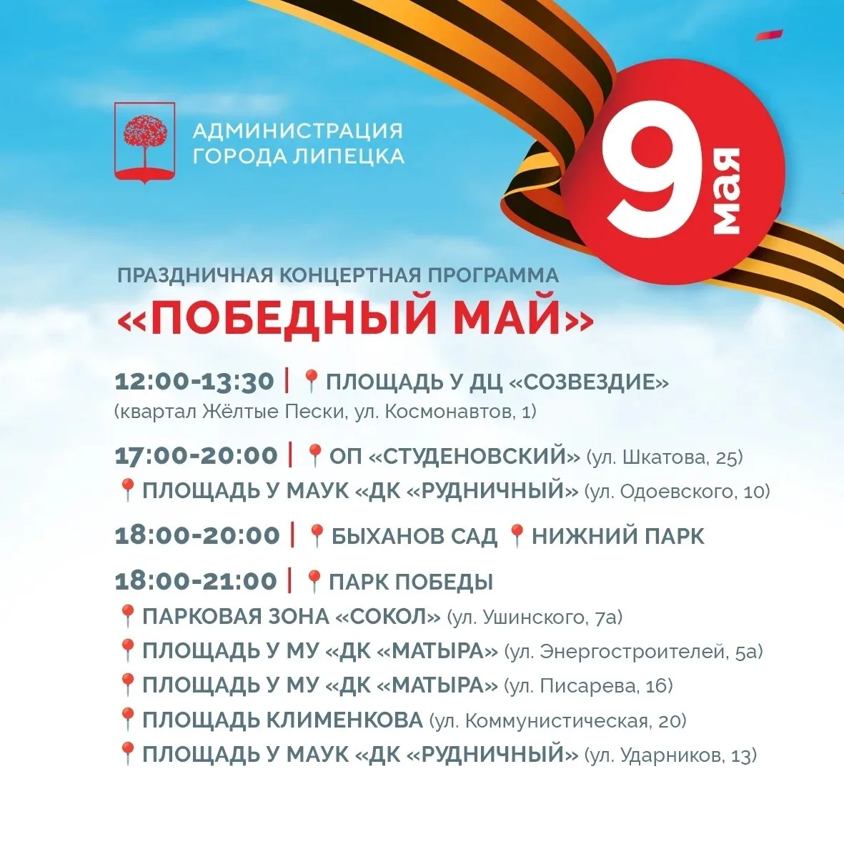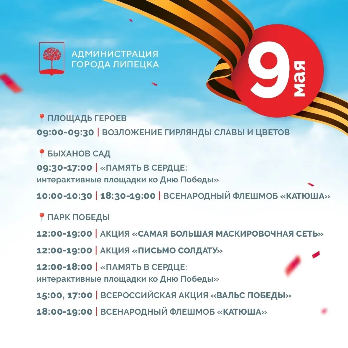 Делимся программой праздничных мероприятий, посвящённых Дню Победы в Липецке