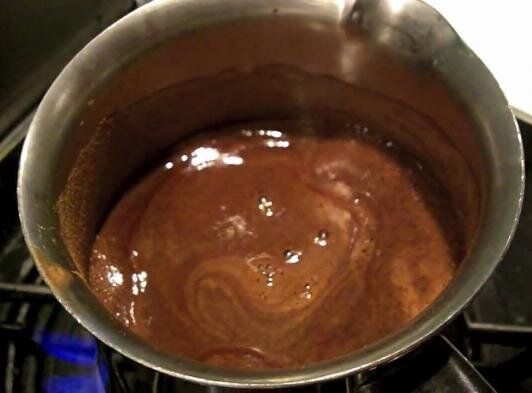 2. Установить кастрюлю на медленный огонь. Начать периодически помешивать, дожидаясь появления первых пузырьков. Как только начнет закручивать, снимите с огня и перемешайте. Оставьте настояться минут на 2-3, чтобы гуща осела.