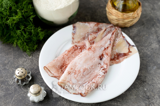 Для начала нужно взять 300 граммов кальмаров. Их следует разморозить при комнатной температуре или под холодной струей воды. Важно освободить тушки от внутренних органов и удалить хитиновую мембрану, затем тщательно промыть. Для того чтобы лучше снять кожу и избежать выделения жидкости при жарке, обдайте кальмары кипятком на 3-5 секунд.