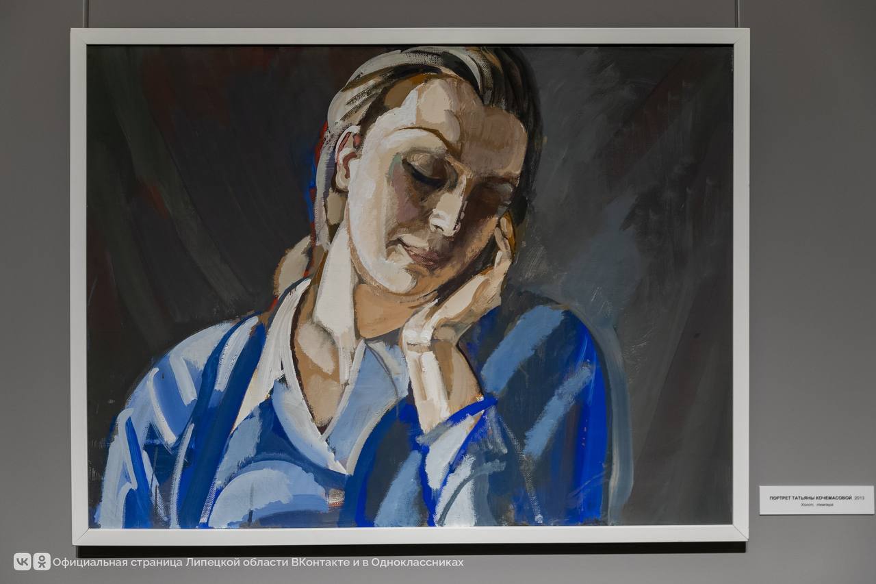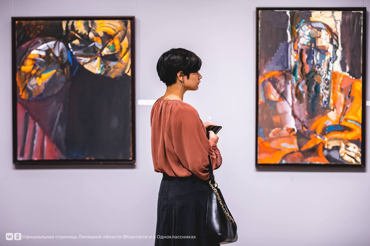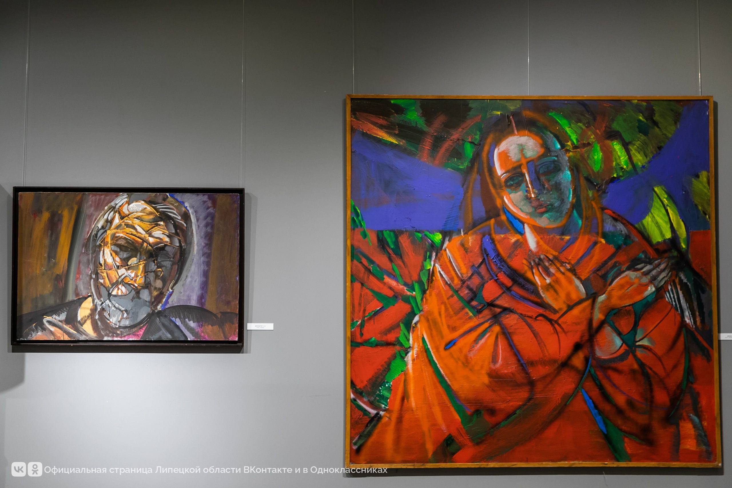 На липецкой выставке можно увидеть 38 картин — портреты современников, исторических и библейских персонажей. Полотна написаны крупными контрастными цветовыми пятнами, от них будто исходит особый свет