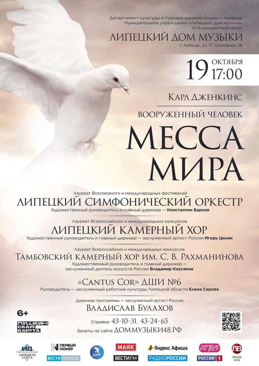 19 октября Липецкий Дом музыки представит шедевр Карла Дженкинса – «Мессу мира».
