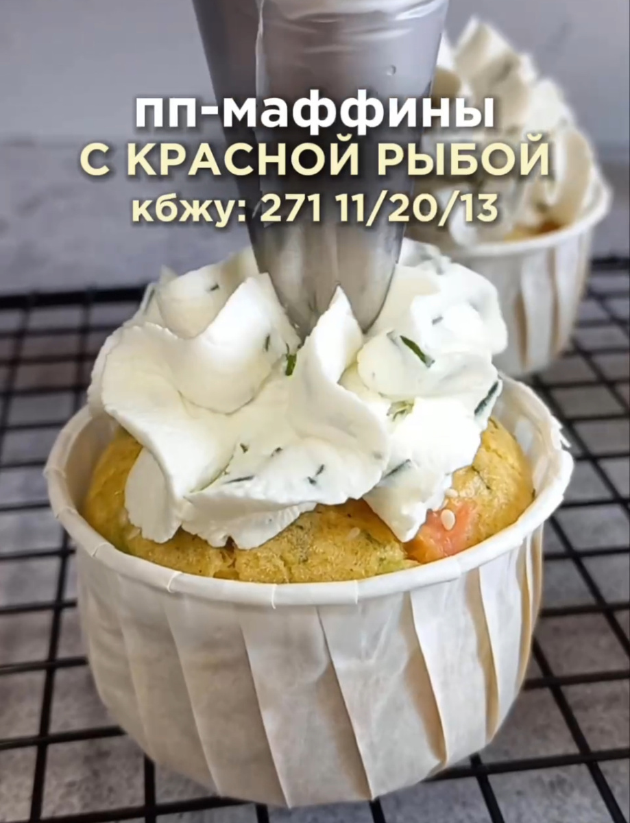 Выпекаем в заранее разогретой до 165 градусов духовке около 15-17 минут, пока зубочистка не выйдет сухой. Даем готовым маффинам остыть на решетке и отсаживаем на них крем, по желанию украшая зеленью или семенами кунжута.