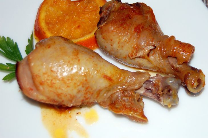 Куриное мясо, приготовленное в духовке с добавлением кисло-сладкого сока плодов апельсина, получается нежным и сочным – пальчики оближешь.