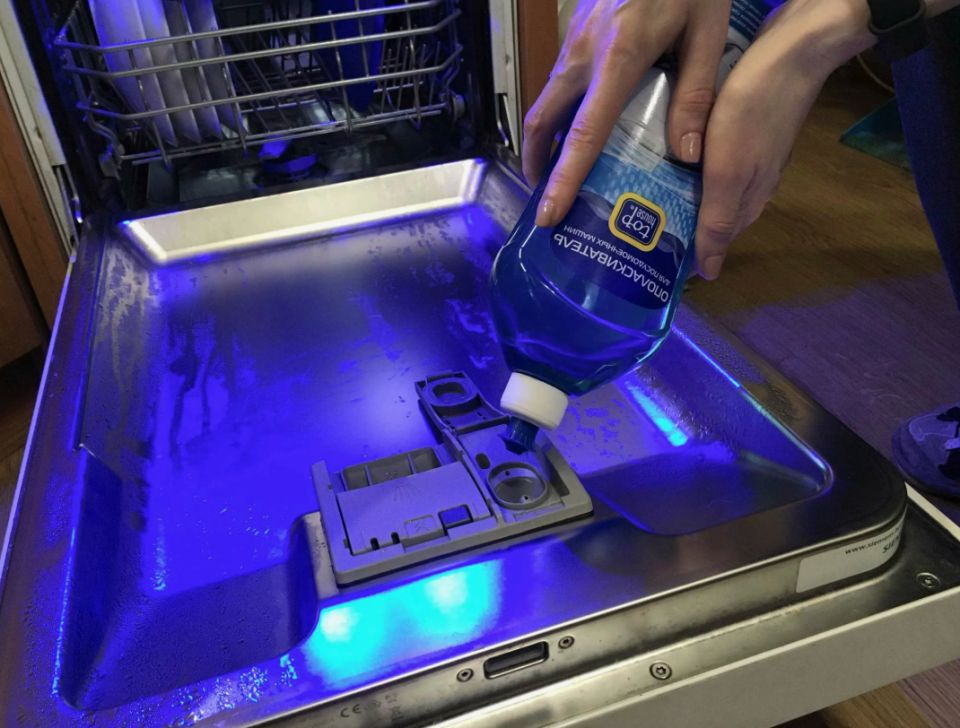 - Замена ополаскивателя на гель для мытья посуды: это вызовет появление лишней пены и загрязнение.