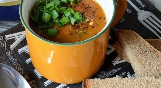 Далее в сковороду добавляют кусочки помидоров, сушеные грибы и сладкую паприку. Вливаются несколько половников отвара фасоли, и все тушится на минимальном огне около 15 минут. После этого массу можно измельчить с помощью блендера до получения однородной консистенции.
