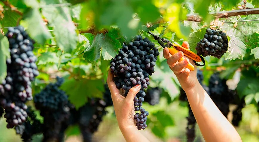 Собирайте виноград в сухую погоду, чтобы избежать попадания влаги. Идеально, если после дождя прошло несколько дней — это позволит диким дрожжам осесть на ягодах. Используйте для сбора большие ящики или корзины, чтобы избежать повреждений снизу. При покупке на рынке выбирайте спелые и крепкие ягоды, избегая поврежденных.