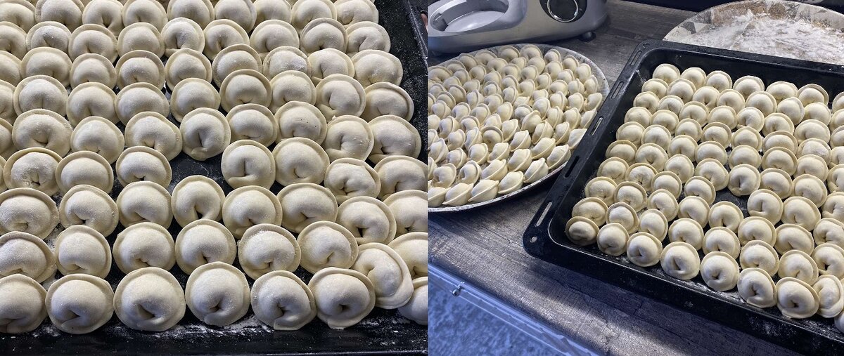 Первый секрет: Использование холодной воды для приготовления теста. Это важно, поскольку чем холоднее вода, тем лучше получается текстура пельменей, что препятствует их развалу во время варки.