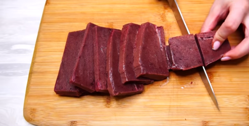 - Подготовка: Помойте печень под холодной водой и удалите все пленки и прожилки. Свежее мясо должно быть без посторонних запахов. Затем нарежьте его на равные порционные куски, что позволит добиться равномерного прогрева во время приготовления.