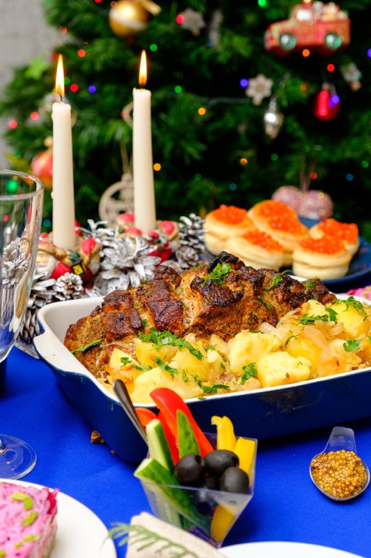 - Традиционные закуски: Разнообразные салаты, закуски из овощей и рыбные блюда. Попробуйте сочетать разные текстуры и цвета.