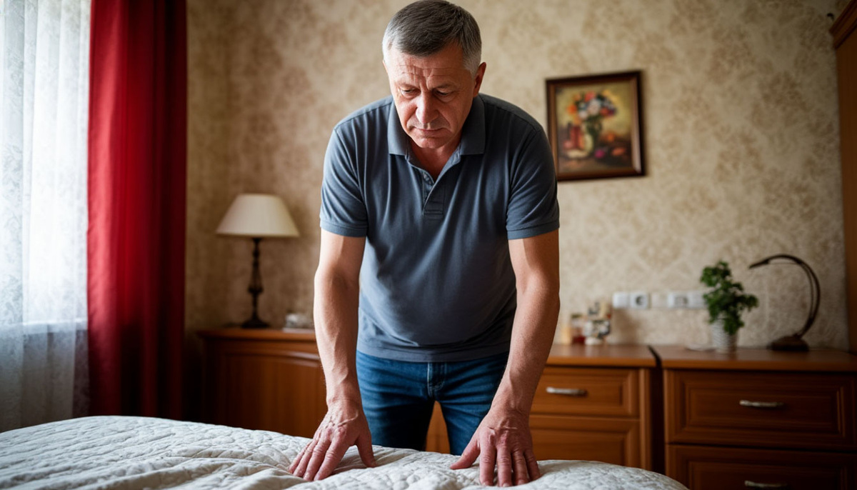 - Подъём на носки у кровати: Утром, спустив ноги с кровати, следует встать на носки 10-15 раз. Это помогает улучшить кровообращение и разогнать утреннюю скованность.