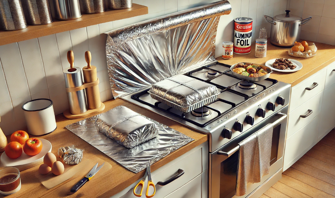 - Защита кухни: Чтобы избежать загрязнений во время жарки, накройте плиту фольгой. Это облегчит процесс уборки после готовки, а саму фольгу можно легко заменить.