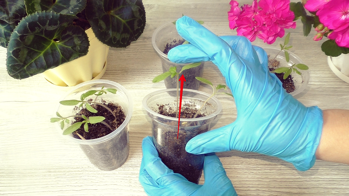 - Важно, чтобы уровень грунта доходил до семядольных листьев; это поможет стеблю обзавестись новыми корнями.