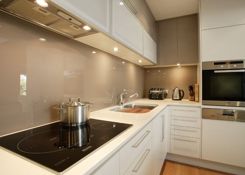 1. Стеклянный фартук на кухне: стиль и гигиена в одном решении
