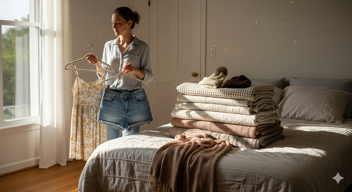 - Перебор черед летних вещей: Важно освободить место в гардеробе для теплее одежды. Летние наряды стоит аккуратно убрать, а осенние, такие как свитера и шарфы, разместить под рукой.