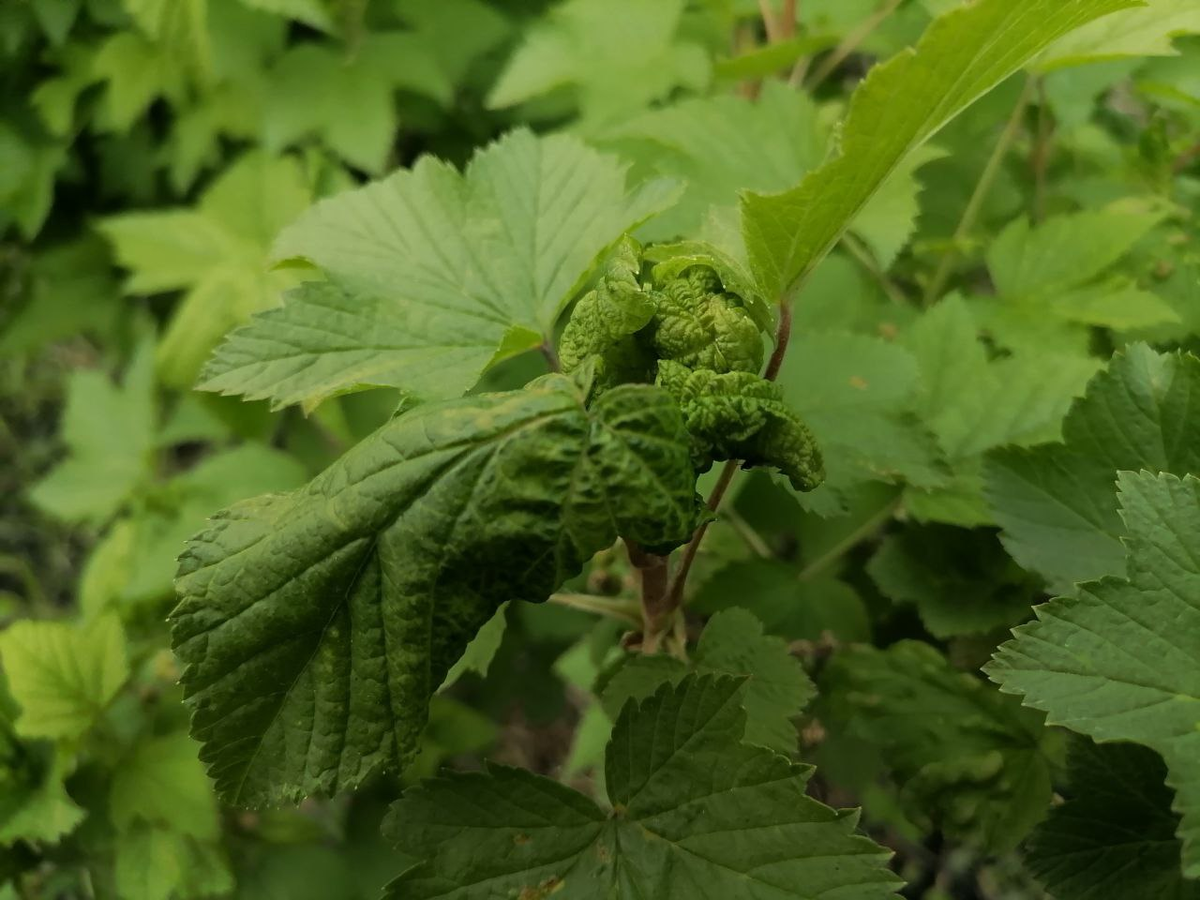 Тля приводит к видимым деформациям растений: скрученные верхушки и перевёрнутые листья могут стать первым сигналом беды. Эти участки обычно окружают муравьи, которые заботливо переносят тлю с одного места на другое, охраняют её и «доят» для получения сладкого нектара. Определить, что именно тля стала проблемой, можно, внимательно осмотрев кусты смородины.