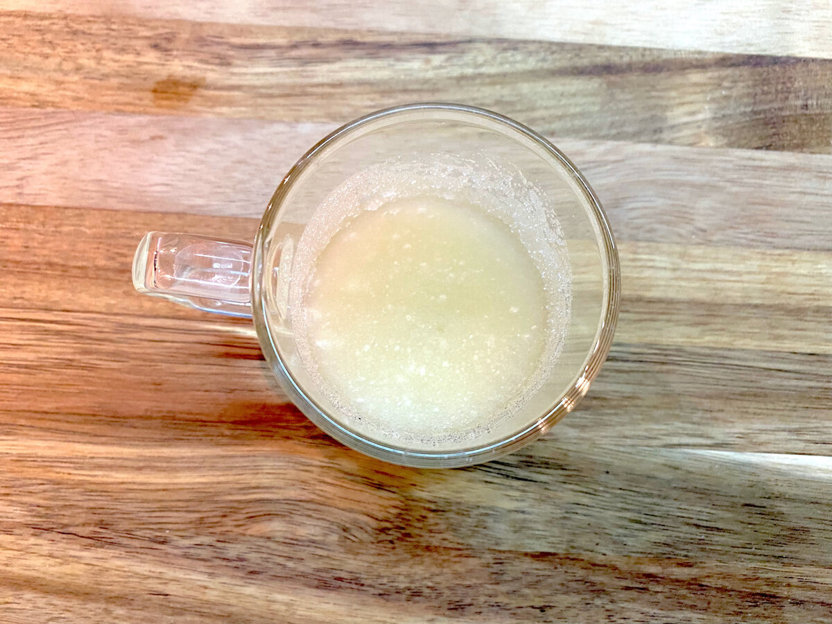 Затем в сотейник влейте сливки и с помощью венчика тщательно перемешайте массу. Доведите её до состояния, когда она почти закипит — не позволяйте жидкости кипеть! После этого аккуратно добавляйте предварительно замоченный желатин и снова перемешайте, пока он полностью не растворится.
