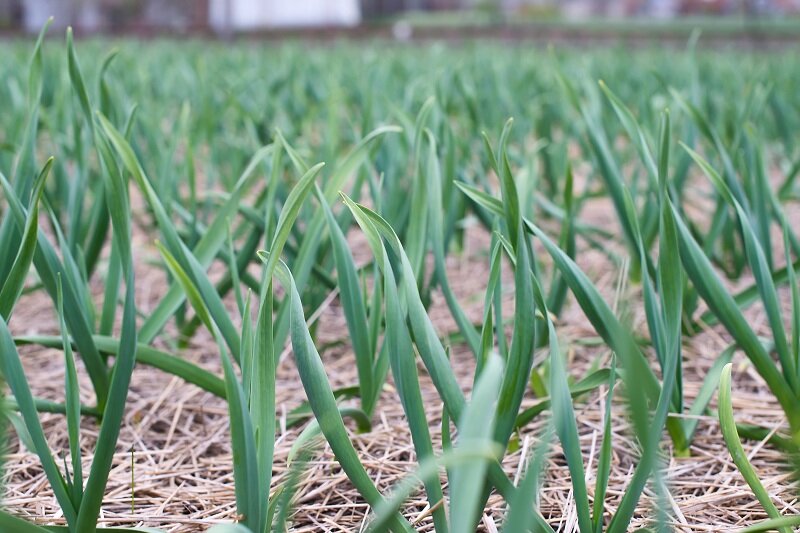 - Для озимого чеснока завязывание ботвы происходит примерно в середине июля.