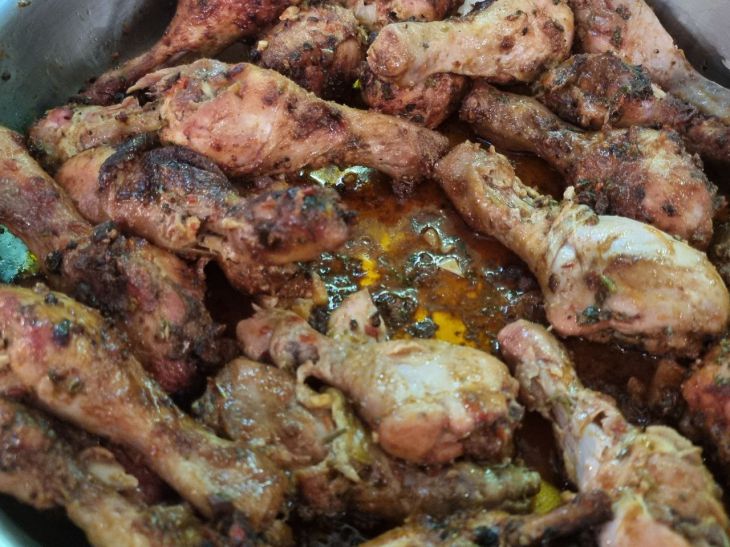 Порция на среднюю сковороду (24 см): 2–3 куска бедра или 4–5 кусочков филе.