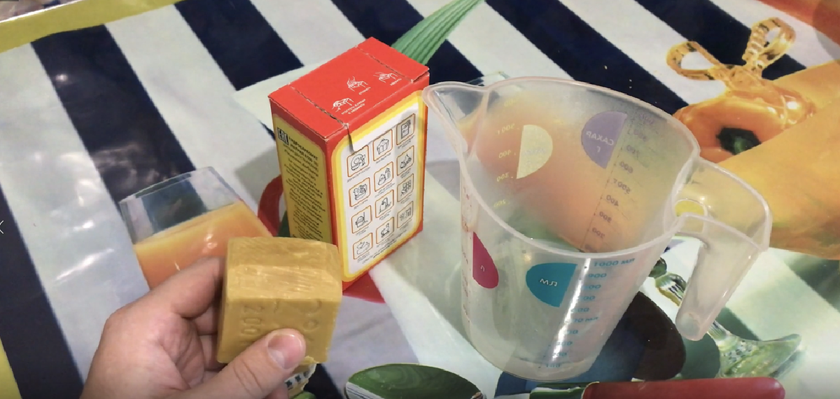 Для начала стоит натереть хозяйственное мыло на терке. Это упростит растворение мыла в воде. Далее в небольшой контейнер добавляют 100 мл горячей воды. Все тщательно перемешивается, чтобы получить однородную мыльную массу. Для наилучшего результата можно воспользоваться миксером, что поможет взбить пену.