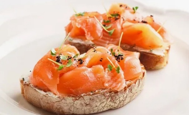 Остудите поджаренные кусочки хлеба и щедро намажьте их сыром. Следующий шаг — выложите на сыр толстые ломтики лосося. Не стоит экономить на начинке — именно она делает брускетту настоящим деликатесом. Все красные рыбы подойдут для этого рецепта: сёмга, форель или даже горбуша. Можно использовать как соленую, так и копчёную рыбу, предварительно нарезанную или целым куском.