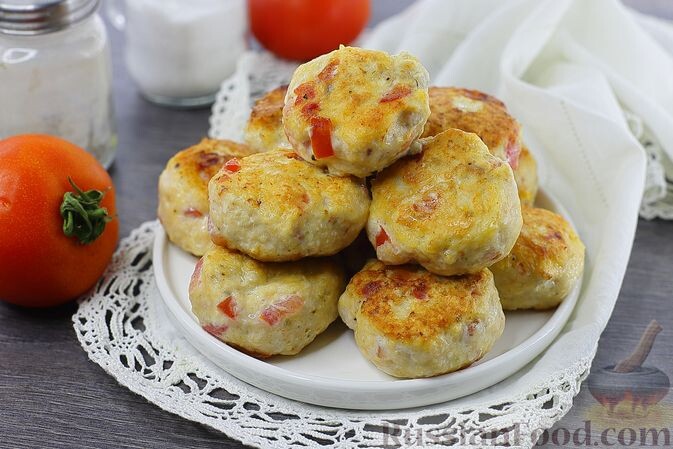 - Котлеты с помидорами и сыром: Эти сочные куриные котлеты с тертым сыром и мелко нарезанными помидорами удивят своей нежностью и вкусом.