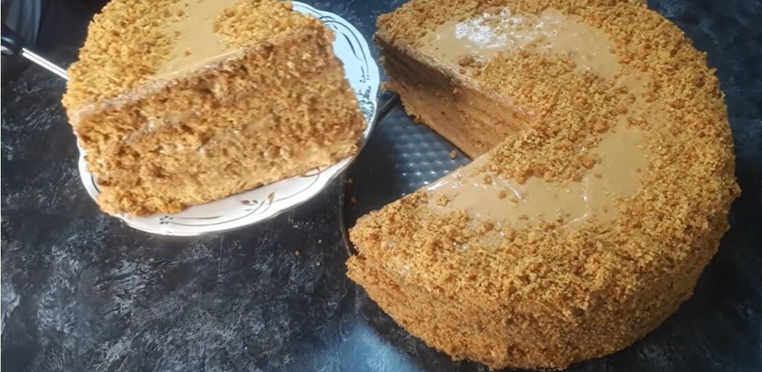 Крем, который идеально подойдет к этому торту, готовится из творога, сливочного масла и вареного сгущенного молока. Все ингредиенты взбиваются блендером до достижения однородной массы и используется для обмазывания коржей. Торт можно оформить по своему усмотрению: как простым украшением из крошек, так и более креативными способами. Несмотря на свою простоту, этот торт порадует как взрослую, так и детскую аудиторию и идеально дополнит любой чай или кофе.