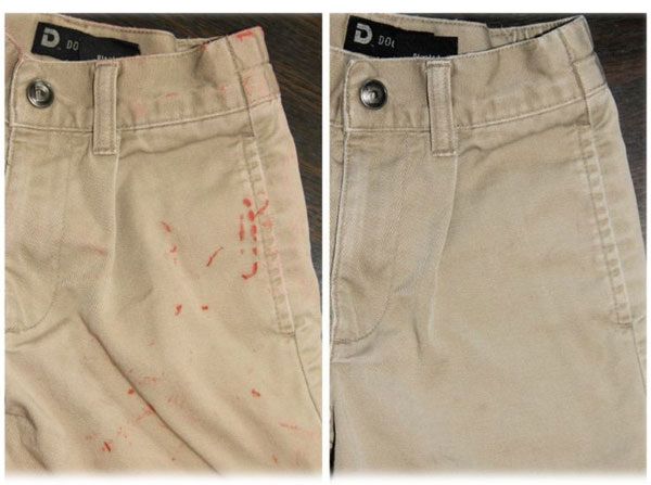 После завершения стирки рекомендуется прополоскать одежду с добавлением уксуса: это поможет зафиксировать красители и сделать ткань более свежей. Если пятно оказалось стойким, можно местно нанести перекись, подождать некоторое время и аккуратно потереть щеткой.