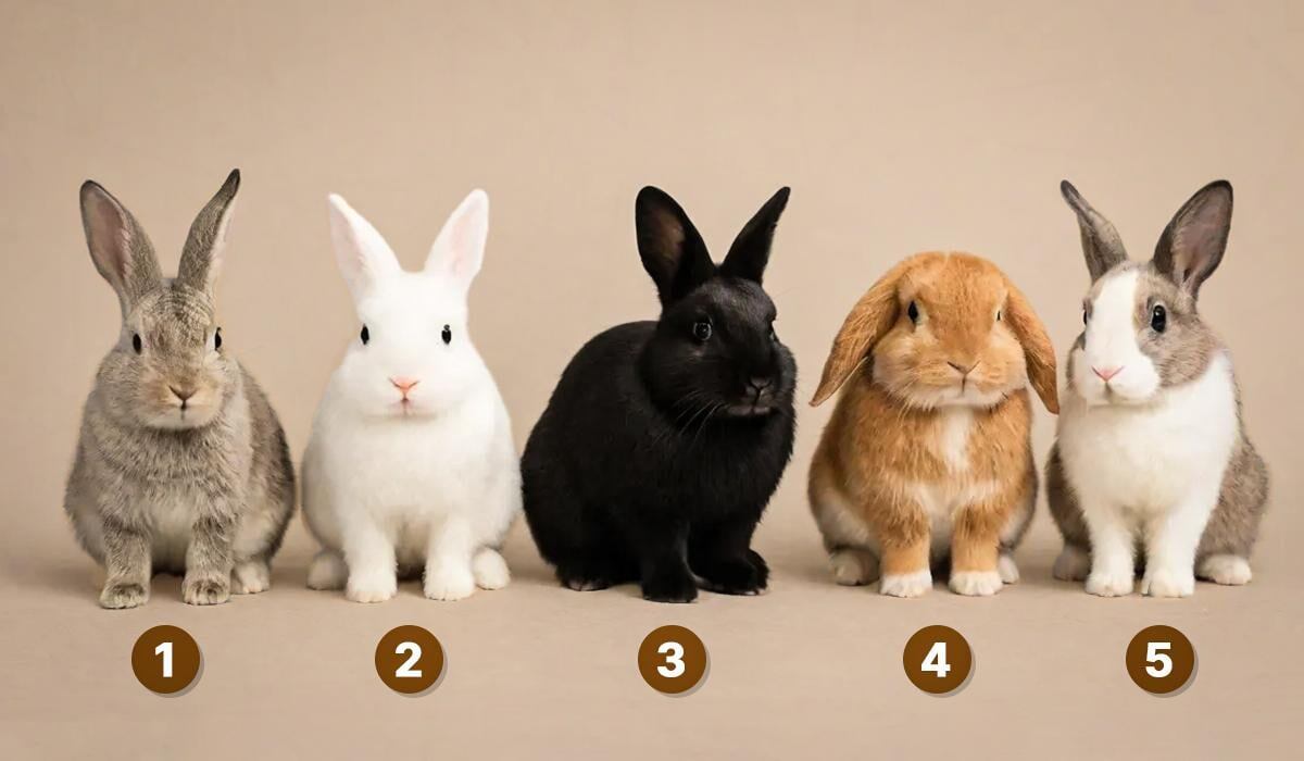 На изображении можно увидеть пять кроликов различных окрасов. Вам необходимо выбрать одного из них, который вам наиболее симпатичен. Делайте выбор интуитивно: ваш ответ будет зеркалом вашей реакции на трудные ситуации и то, как вы воспринимаете критику.