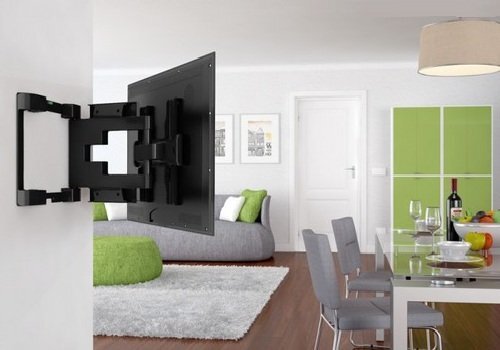 - Кронштейны с поворотом: предоставляют максимальную гибкость в настройках. Можно поворачивать экран в любую сторону, что удобно для больших помещений или кухни.