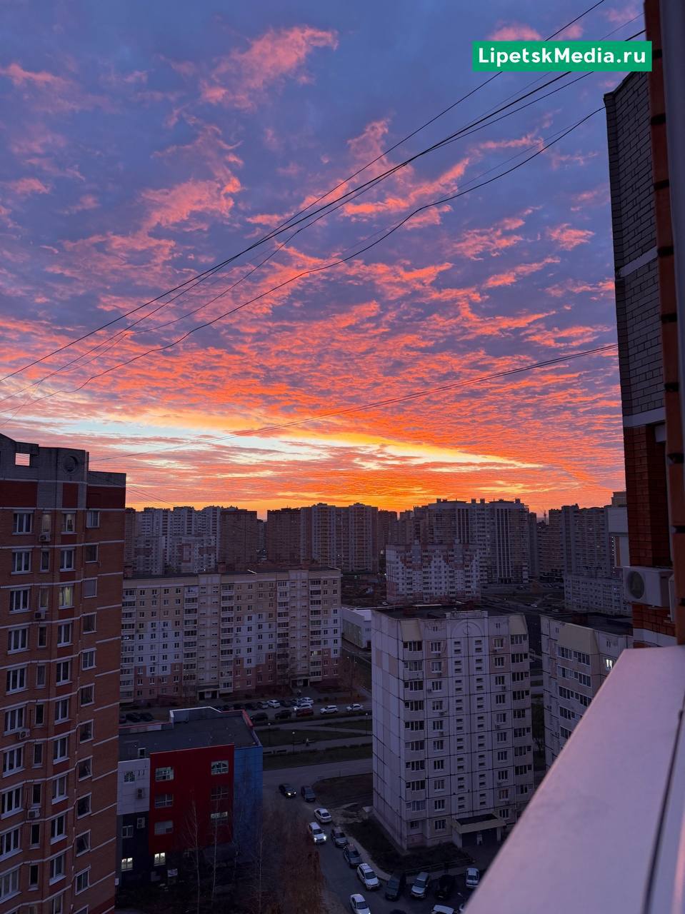 Второй день небо окрашивается в яркие оранжево-розовые краски, даря необычную атмосферу субботнему вечеру.