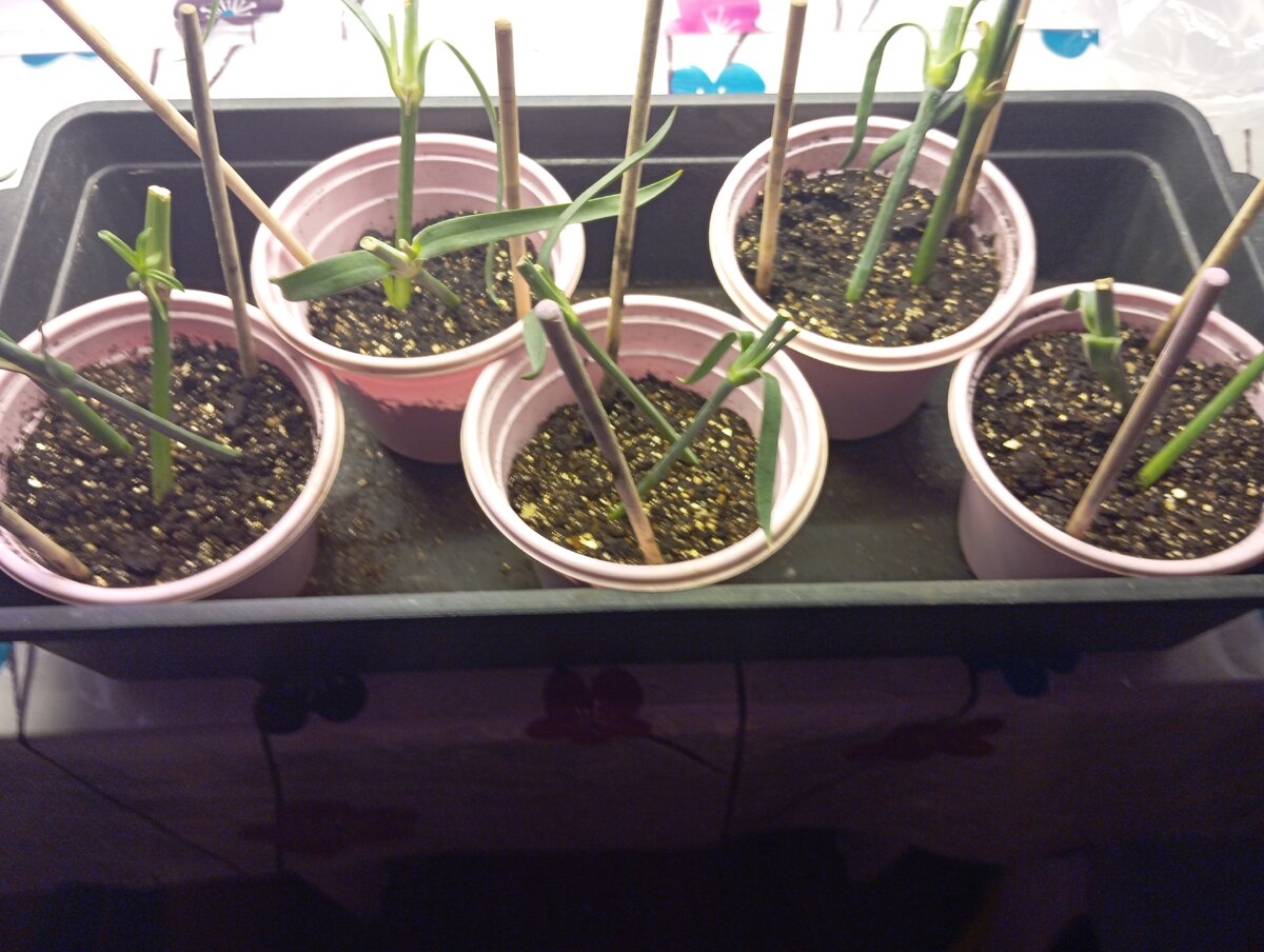 Спустя три недели после начала эксперимента, видно, что растения начинают давать первые признаки жизни. Процесс открытия черенков для воздуха начался — их открывают по два часа несколько раз в день, что способствует лучшему укоренению. Чередование открывания и закрывания создает необходимую среду для роста, и результаты абсолютно радуют.