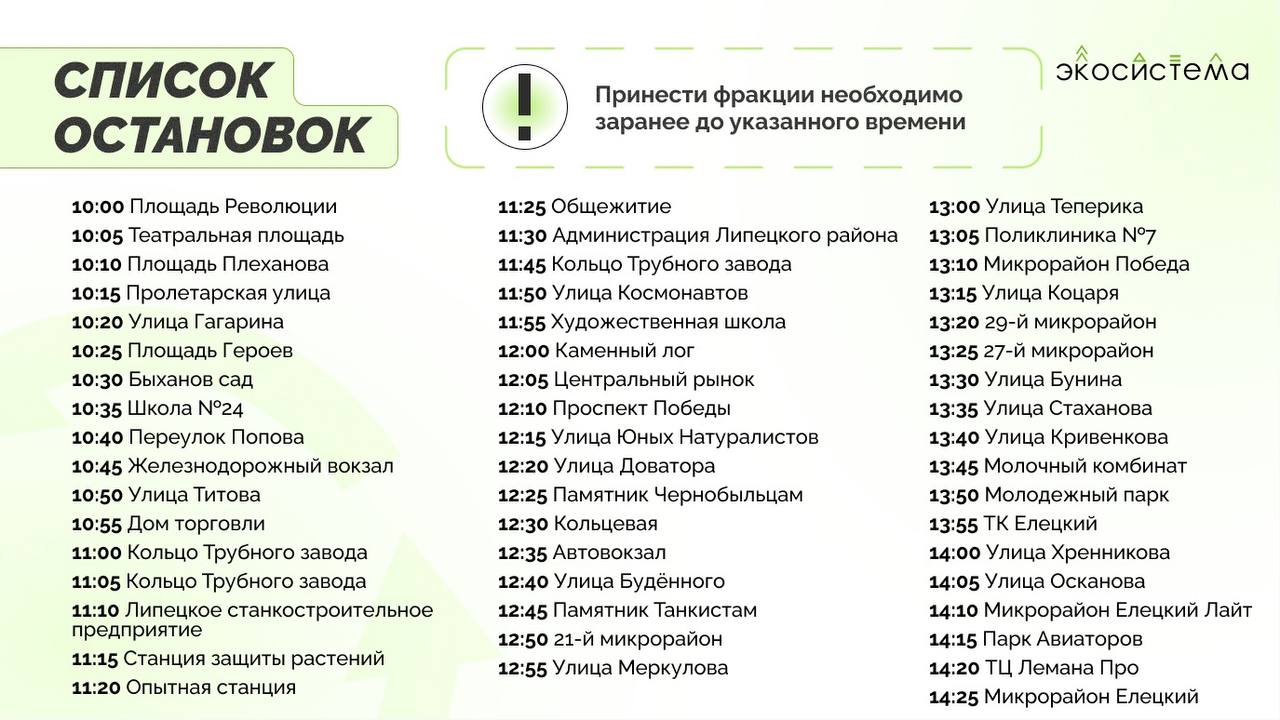 Просим приносить сырьё в разных пакетах и приносить всё заранее до указанного в расписании маршрута времени.
