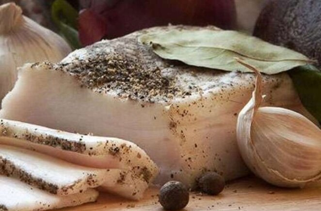 - Чеснок - не мелите! Его следует поддавить, чтобы он разбивал целостность зубчиков, но не нужно резать мелко. Это обеспечит соку чеснока возможность «выдохнуться» и впитаться в сало без лишней резкости.