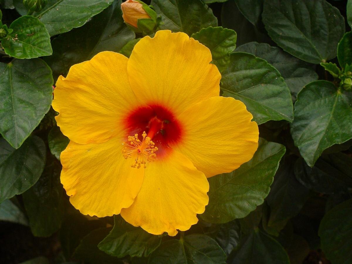 Гибискус — тропическое растение с крупными яркими цветами, которое отличается своей легкостью в размножении. Черенки, срезанные весной с молодых побегов, легко укореняются. Это не только красивое, но и быстро восстанавливающееся после обрезки растение, позволяющее создавать густые цветущие кустарники. Гибискус предпочитает солнечные места и требует регулярного полива, что делает его отличным для живописных цветников.