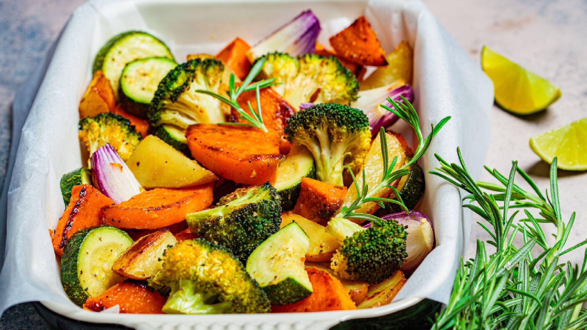 Всегда смазывайте форму для запекания и сбрызгивайте сами овощи маслом. Корнеплодам или капусте достаточно пары ложек на противень. А вот у грибов и баклажанов пористая текстура, поэтому им нужно больше продукта, чем остальным.